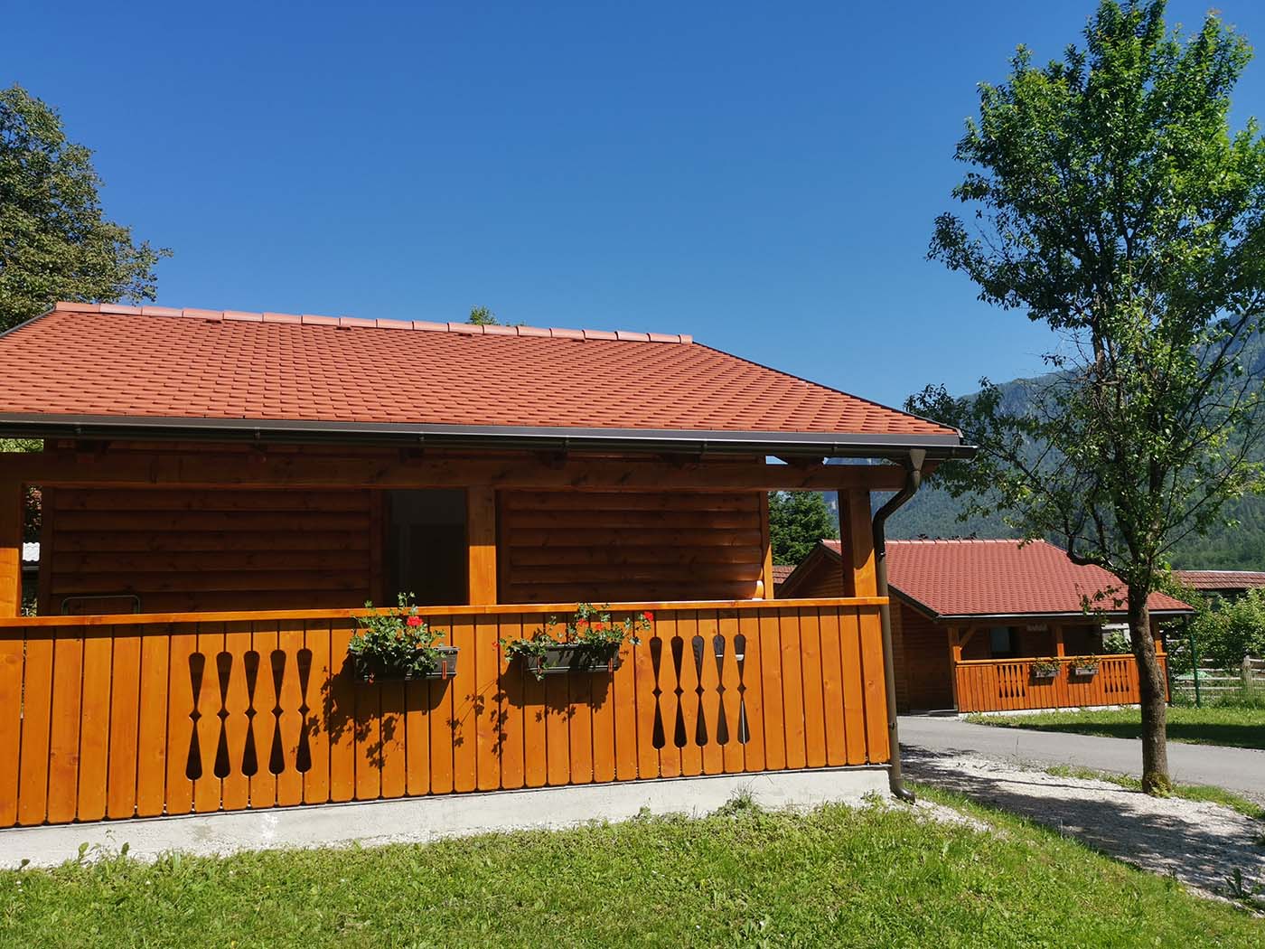 Le case sono situate in una foresta con vista sulle montagne delle Alpi Giulie.